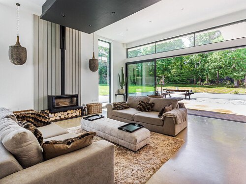 A beautiful 4,000sqft modern & contemporary home situated on a 2 acre plot in an exclusive private road in Surrey, about 10mins drive from Woking station. The ground floor has large open plan rooms overlooking the private garden & large woodland, with 12ft high ceilings and plenty of design features.