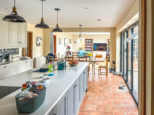 5bedroom detached house with traditional modern flare, 50foot open plan living dining area and 16 foot sky lantern.